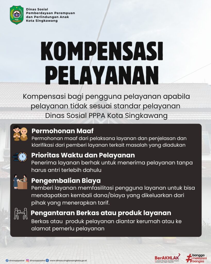 Pemberian Kompensasi Kepada Pengguna Layanan Terhadap Pelayanan Pada Dinas Sosial PPPA Kota Singkawang yang tidak sesuai dengan standar pelayanan, sesuai yang telah tertuang pada SK Nomor 100.3.3/51/Set-A/2024