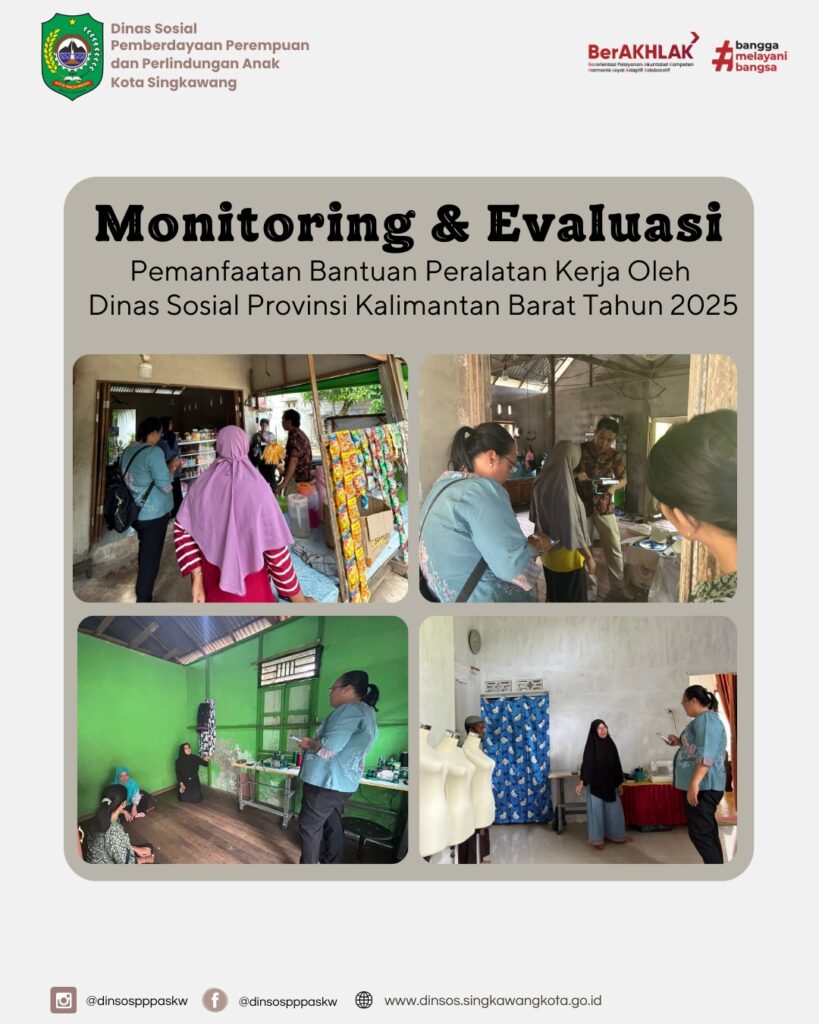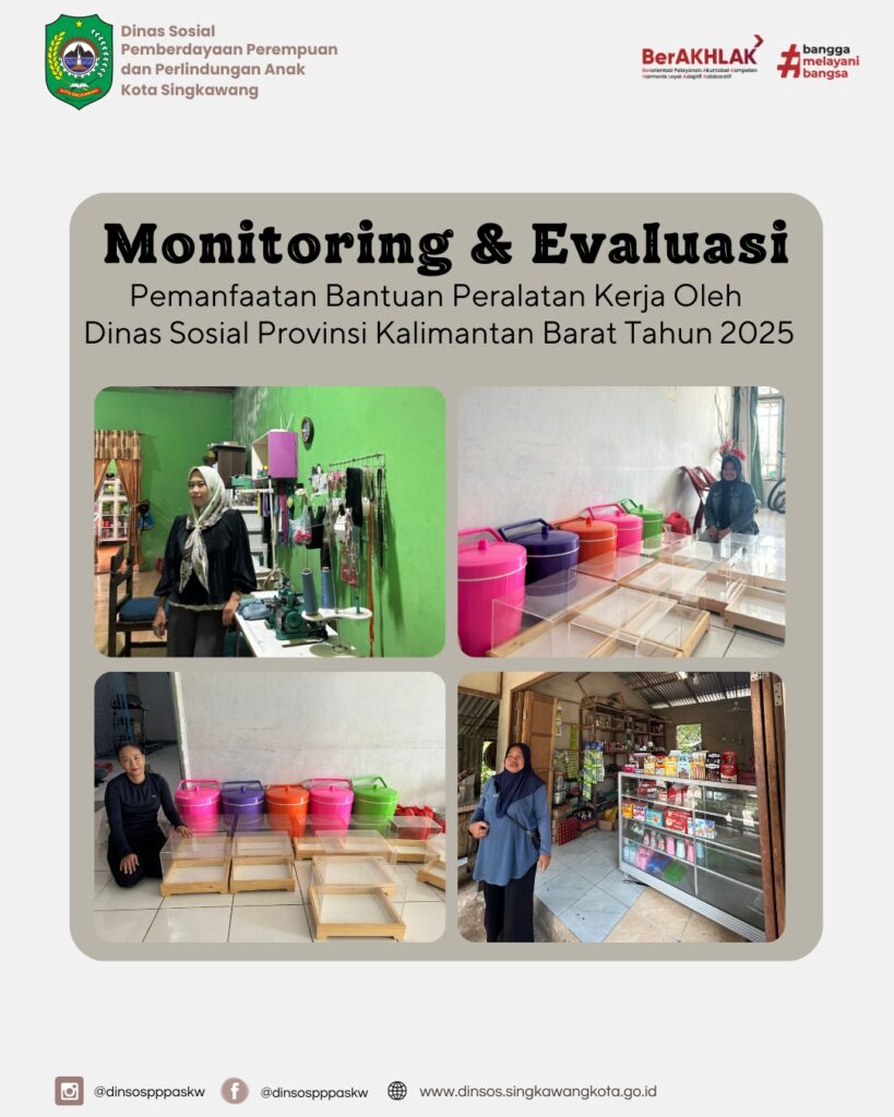 Monitoring dan Evaluasi Pemanfaatan Bantuan Peralatan Kerja OlehDinas Sosial Provinsi Kalimantan Barat Tahun 2025Oleh Admin Dinsospppa / 10/03/2026